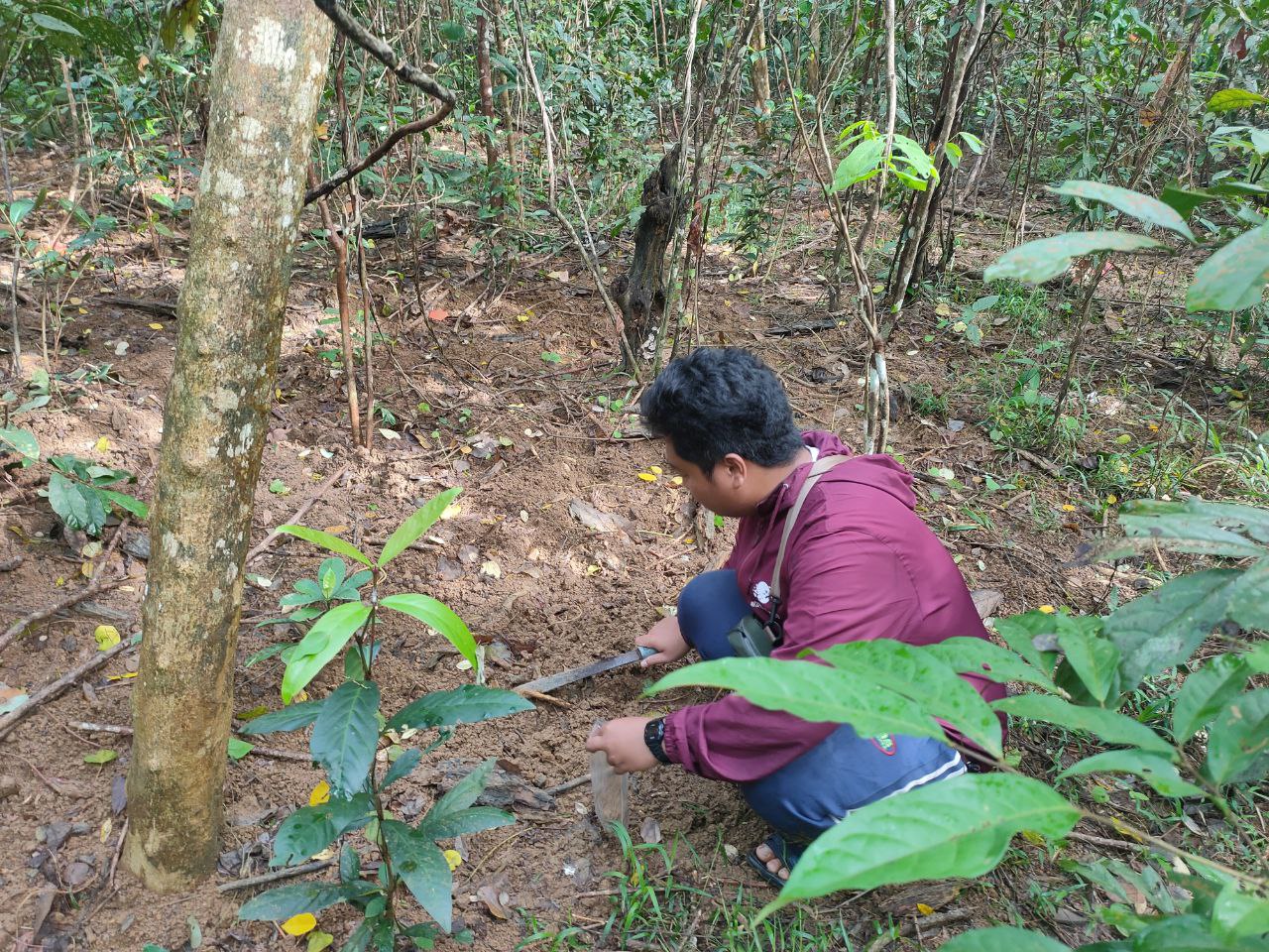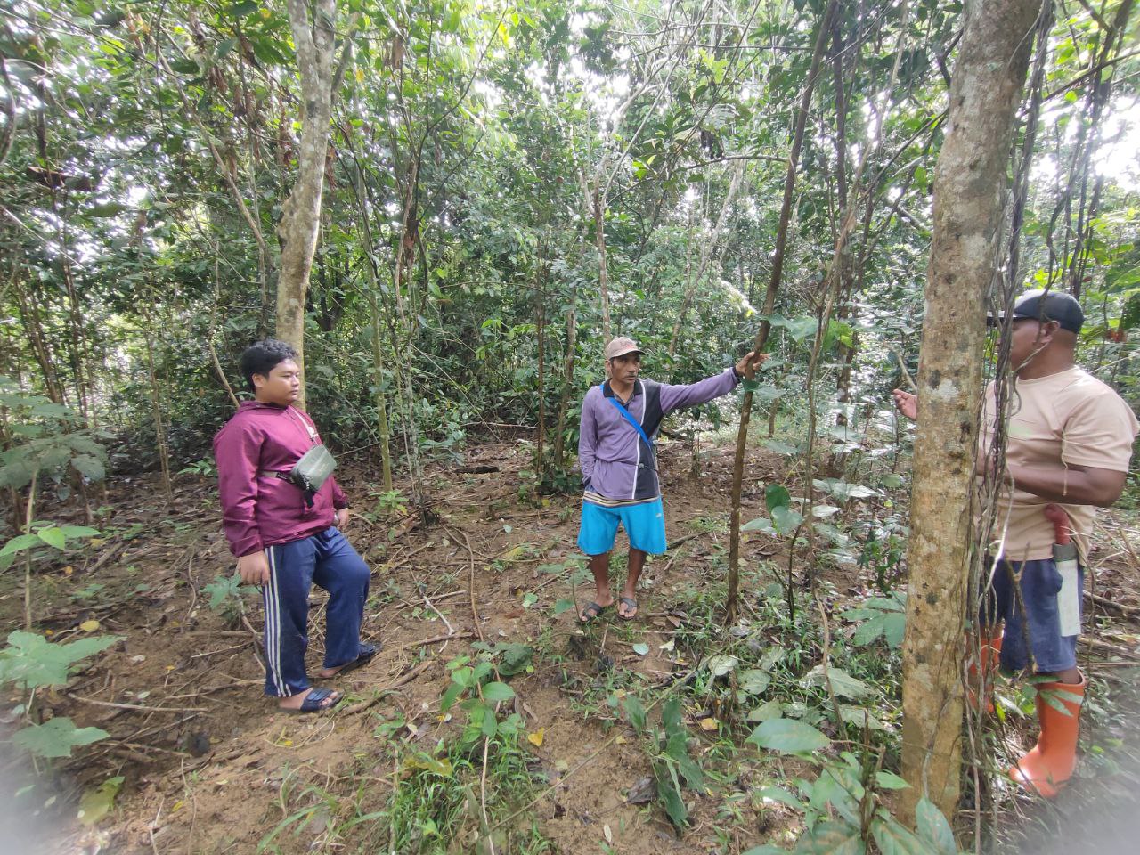Pengambilan Titik Koordinat Dan Sampel Tanah Calon Lahan Penanaman Nilam Pak Junardi Ex Petani Lada Dan Di Lahan Beliau Masih Terdapat Sisa-Sisa Lada Yang Beliau Tanam 6 Tahun Lalu