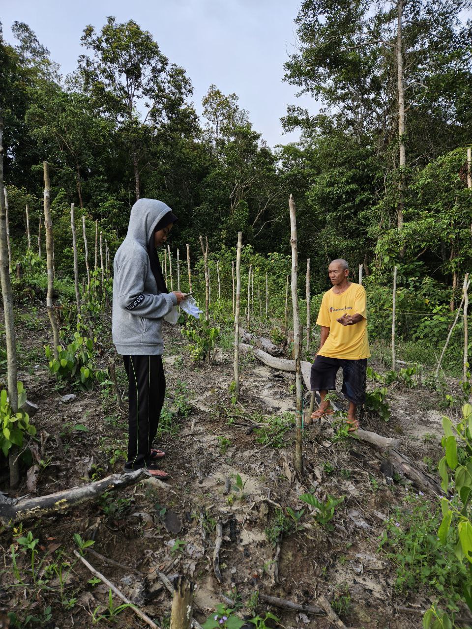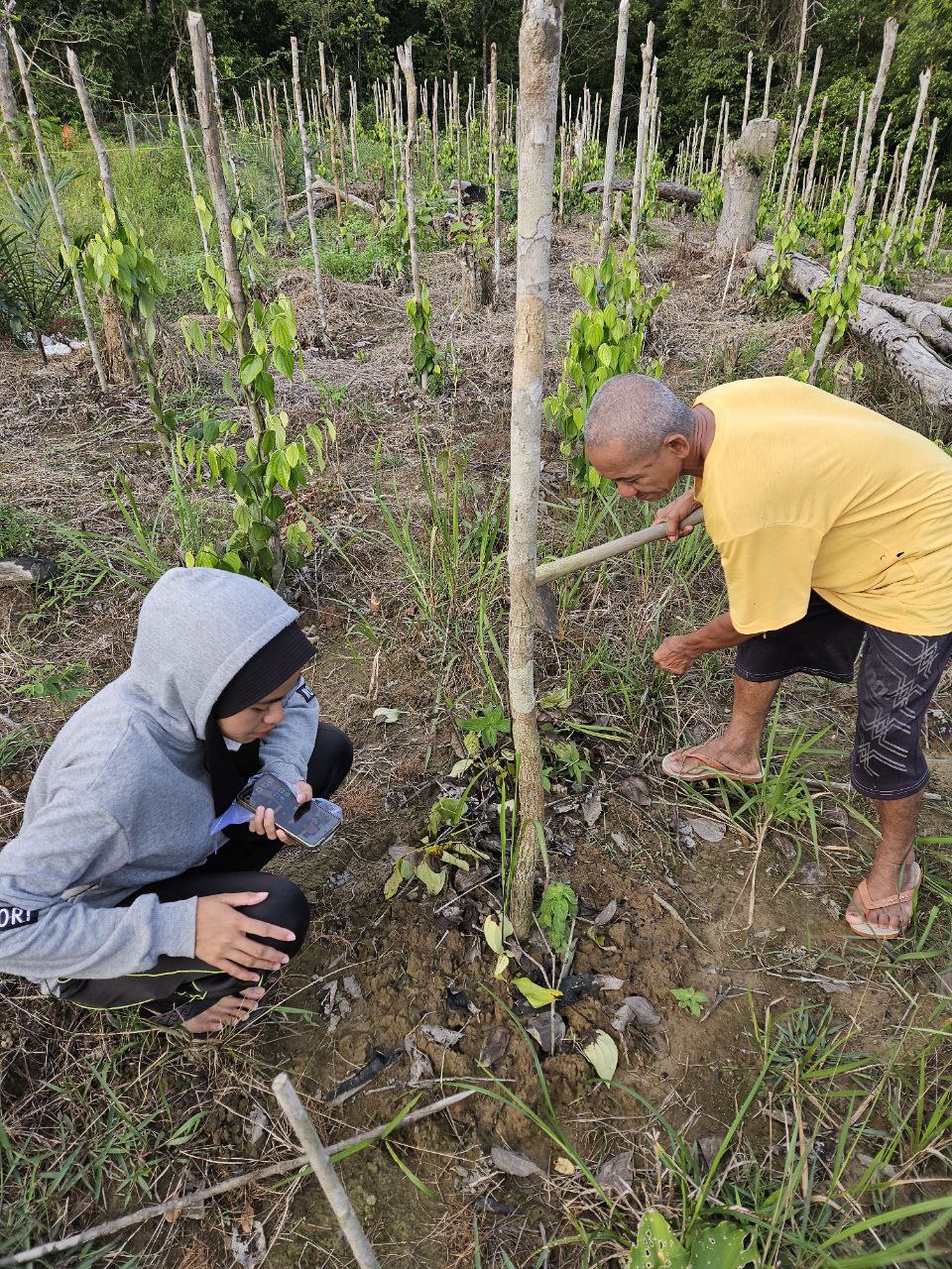– Pengambilan Titik Kebun dan Poligon – Pengambilan Sample Tanah – Diskusi HPT yang Terdapat di Kebun Lada Pak Amat – Jenis Lada: LDL – Jumlah Lada: 200 Rumpun