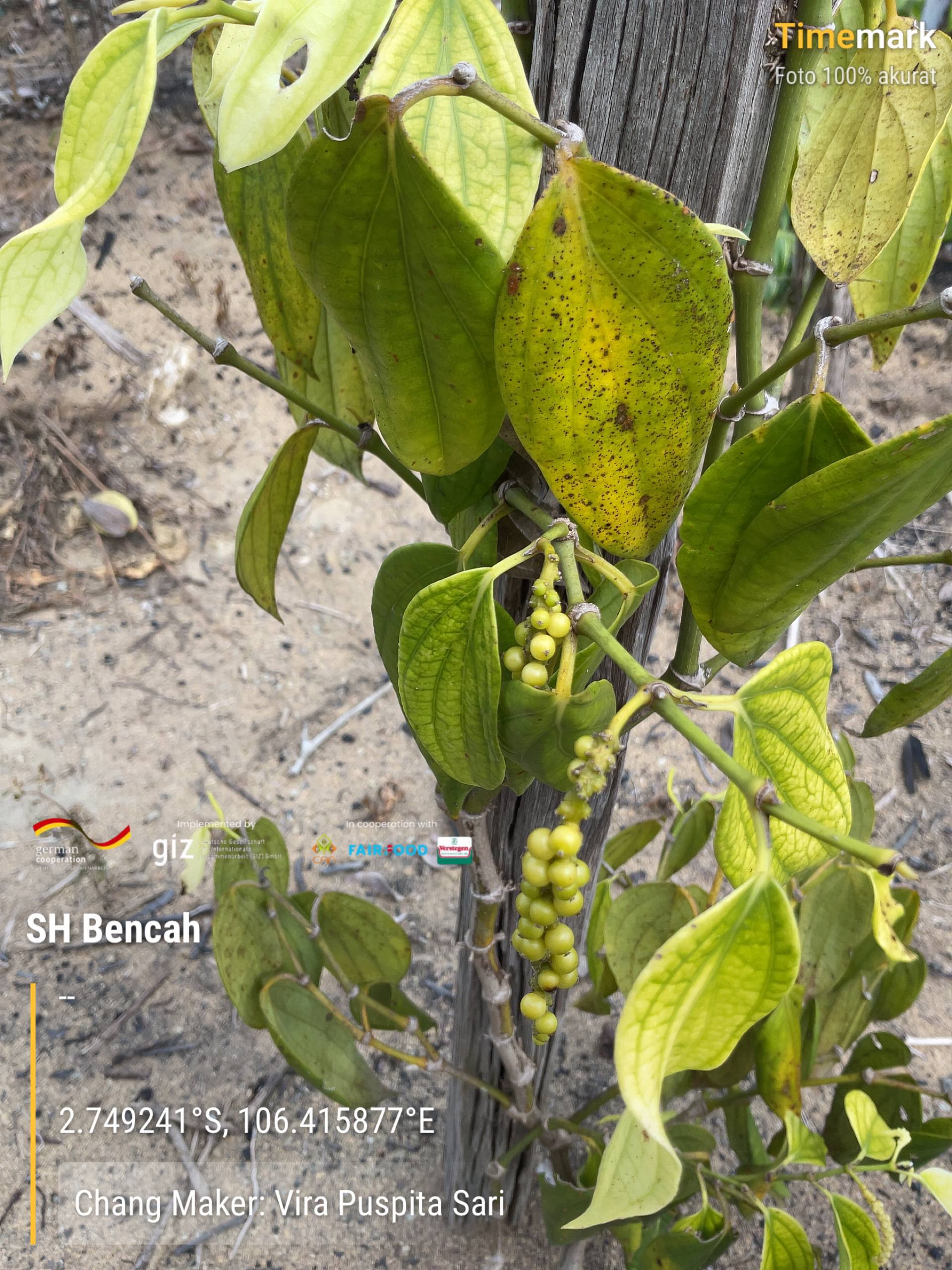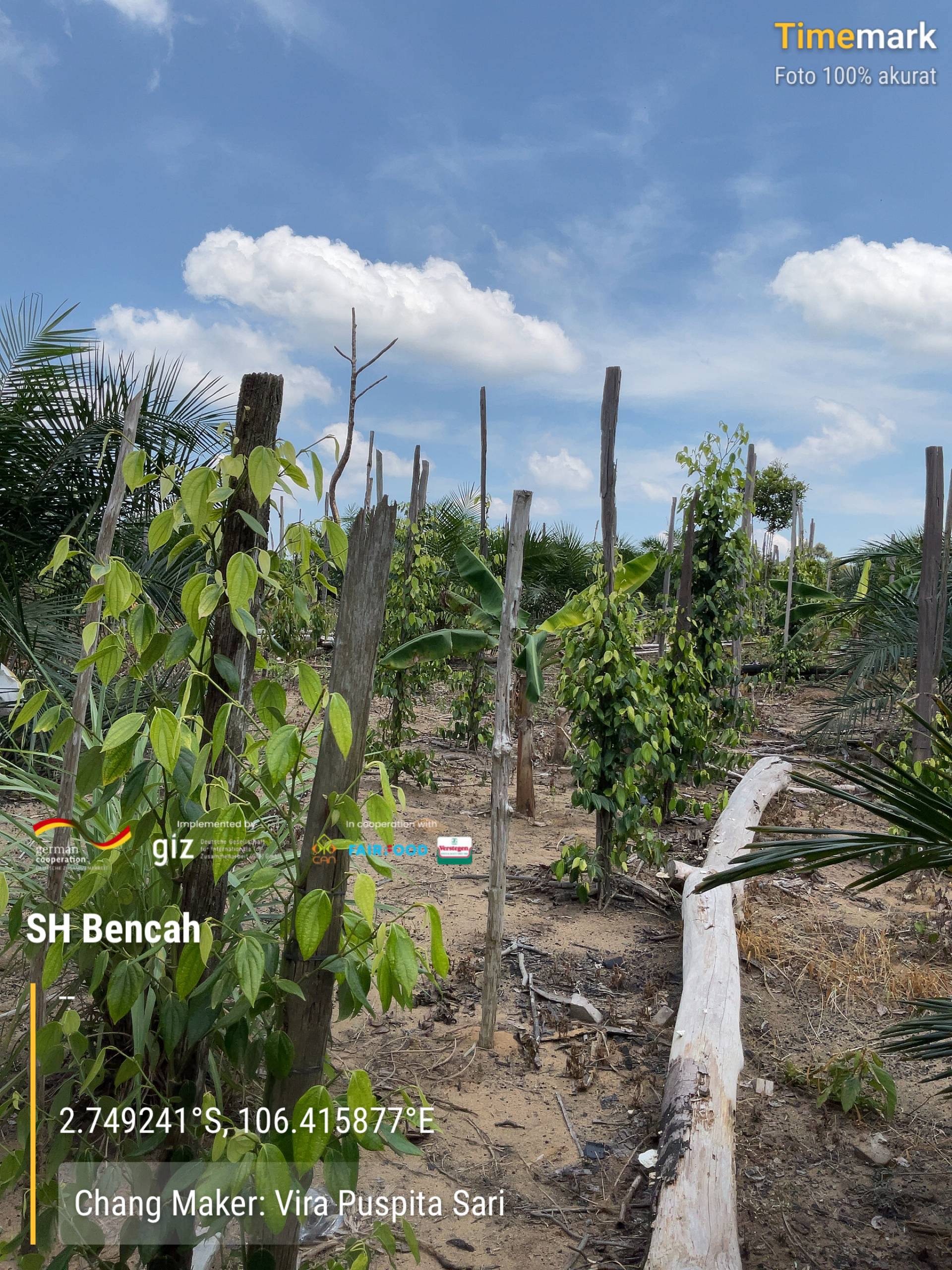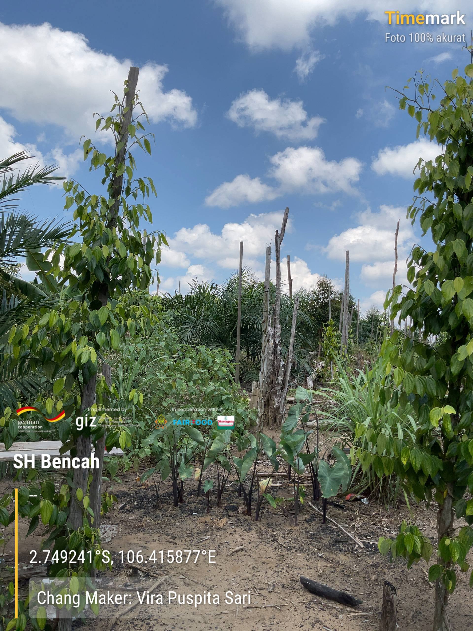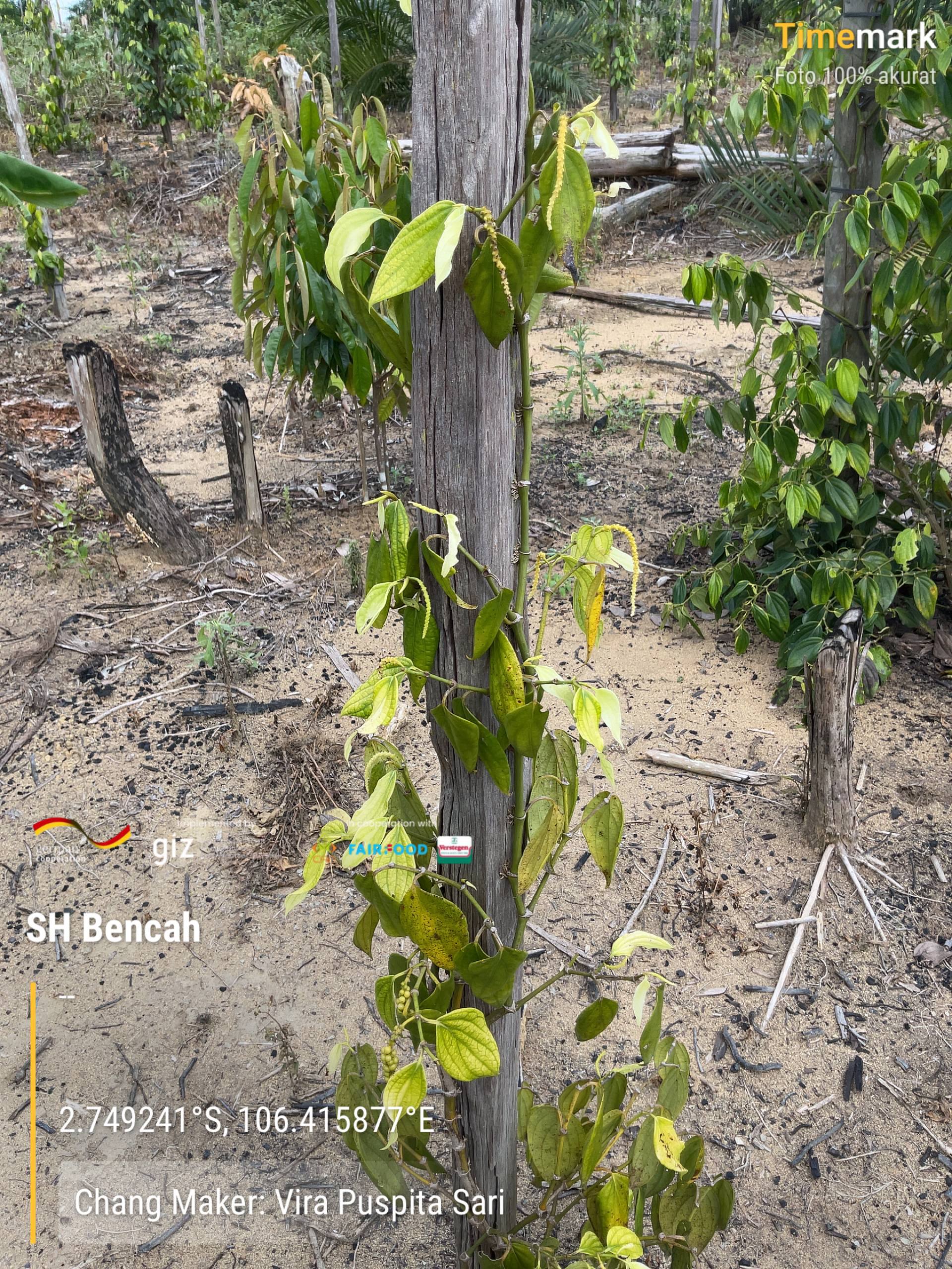 Assessment kebun. Jumlah lada: 500 rumpun. Varietas: Merapin, Nyelungkup. Tajar mati. Tumpang sari: sawit, kopi, durian, kelapa, pisang, pohon belanger. Tanaman pembatas: petai dan matoa. Jarak tanam ke air: 50M. Penjelasan terkait beberapa materi tentang basic training. Pemberian bubur burdo dan Trichoderma sebagai pengendalian dan penanggulangan OPT. Tanaman banyak mengalami abnormal karena JAP, Busuk pangkal batang, PYMV, nematoda. Beberapa jenis tanaman diagnosa: kekurangan pupuk, kapur, dan kekeringan. pH tanah: 3.