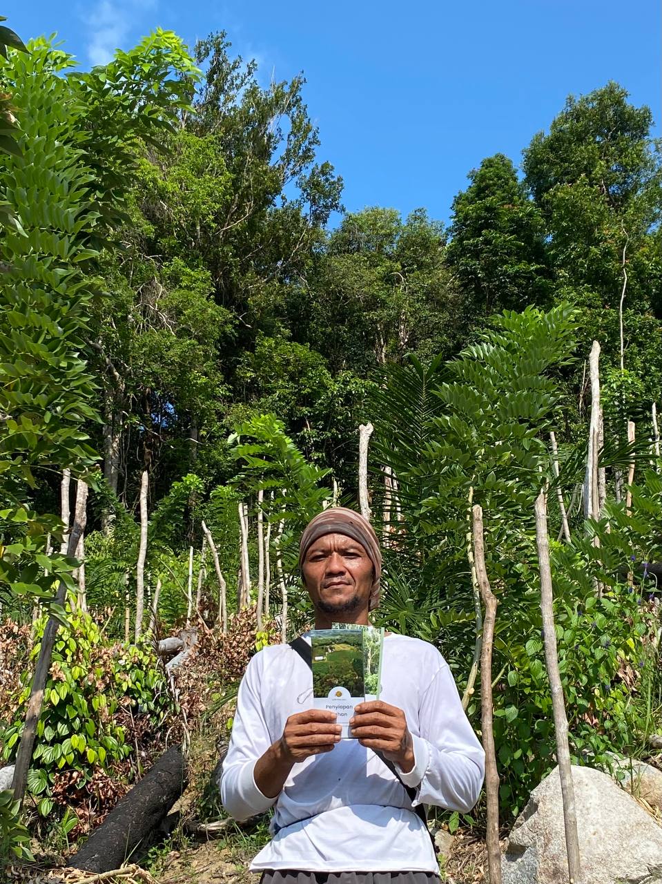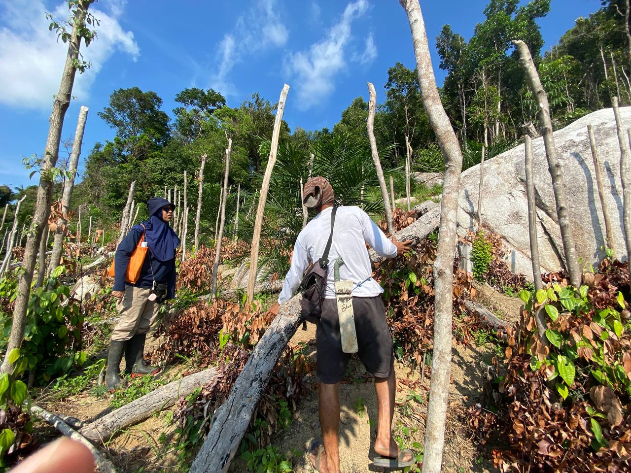 – Tanaman lada baru berumur 1 tahun dan masih ditutupi karena sudah musim panas (kebun dekat dengan pantai dan kondisi miring sehingga panas lebih tinggi dan lama)