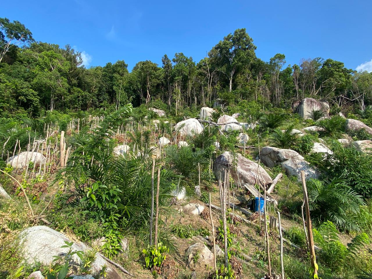 – Kondisi lahan miring dan banyak bebatuan besar