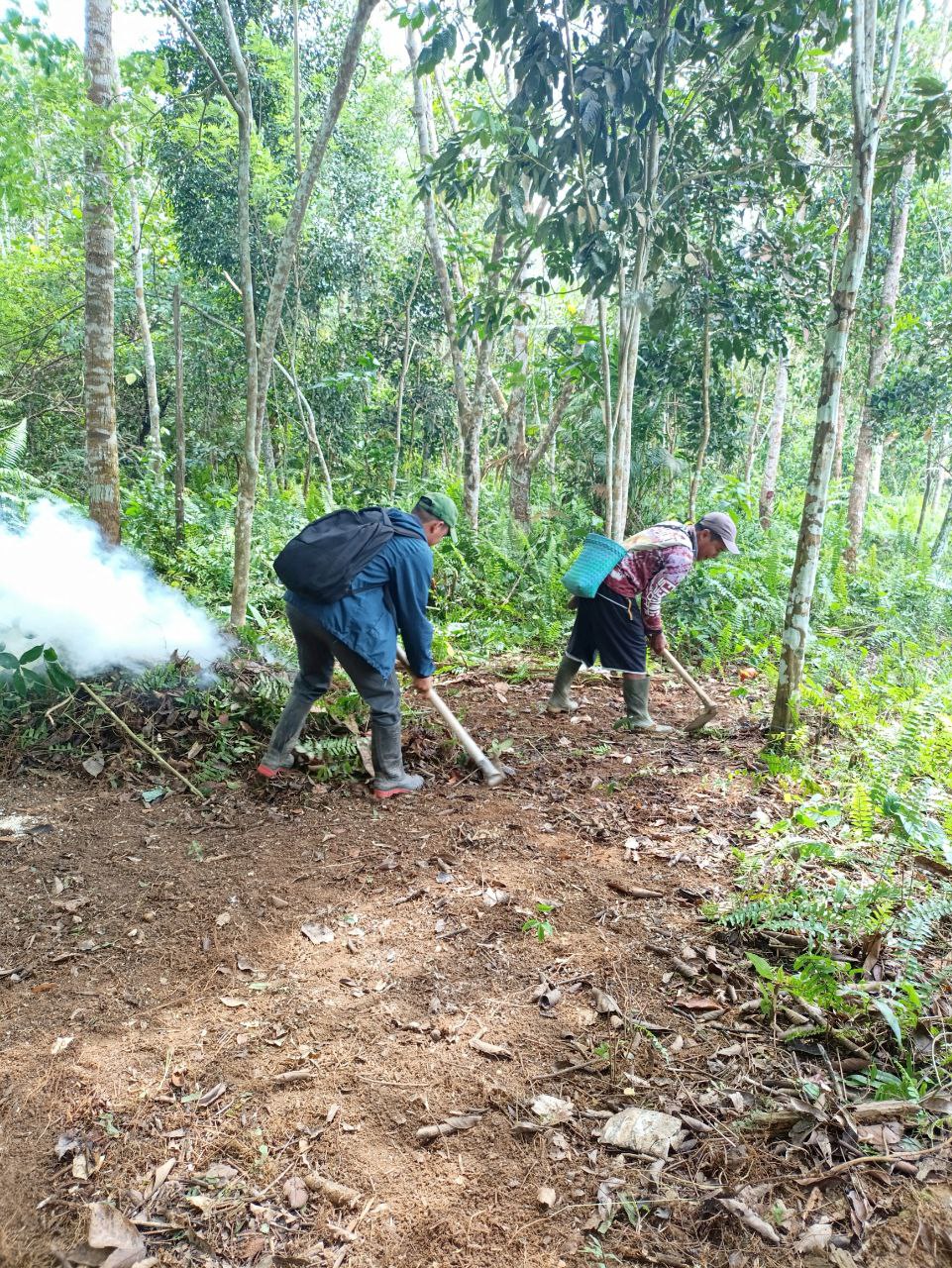 Aktivitas pagi Ikut kegiatan kelompok bina lestari gotong royong kegiatan persiapan pembuatan kompos untuk menanam nilam, perdana untuk kelompok bina lestari komposnya bikin sendiri. Aktivitas siang bantu pak sarbali mengisi polibag bareng cucunya, sudah beberapa yang sudah di tanam nilam sekitar 300 sisanya masih menyusul dalam tahap mengisi polibag.