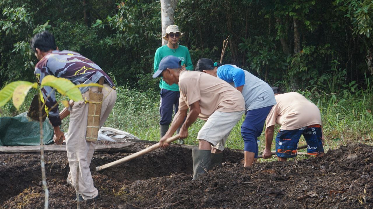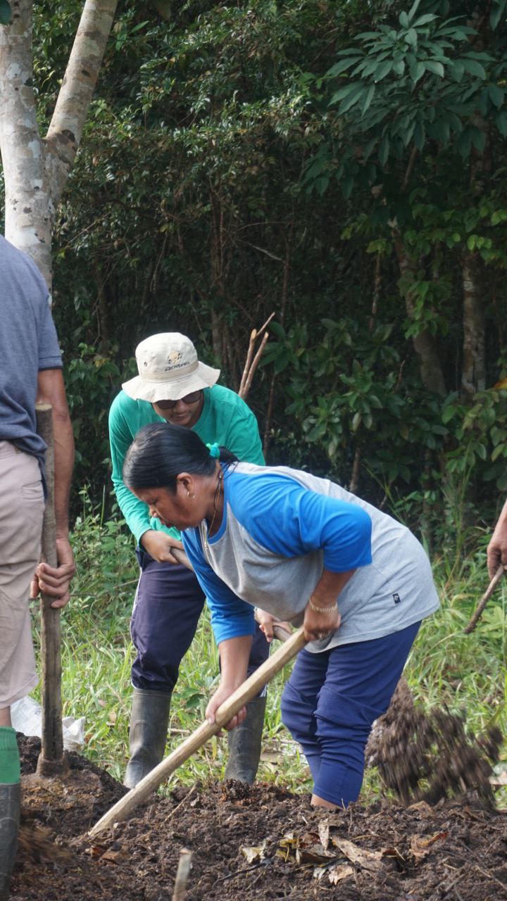 2. Aktivitas siang perbaikan rumah bibit. Sebagian batang mulai rubuh. Hari ini perbaikan rumah bibit dan monitoring bibit lada.