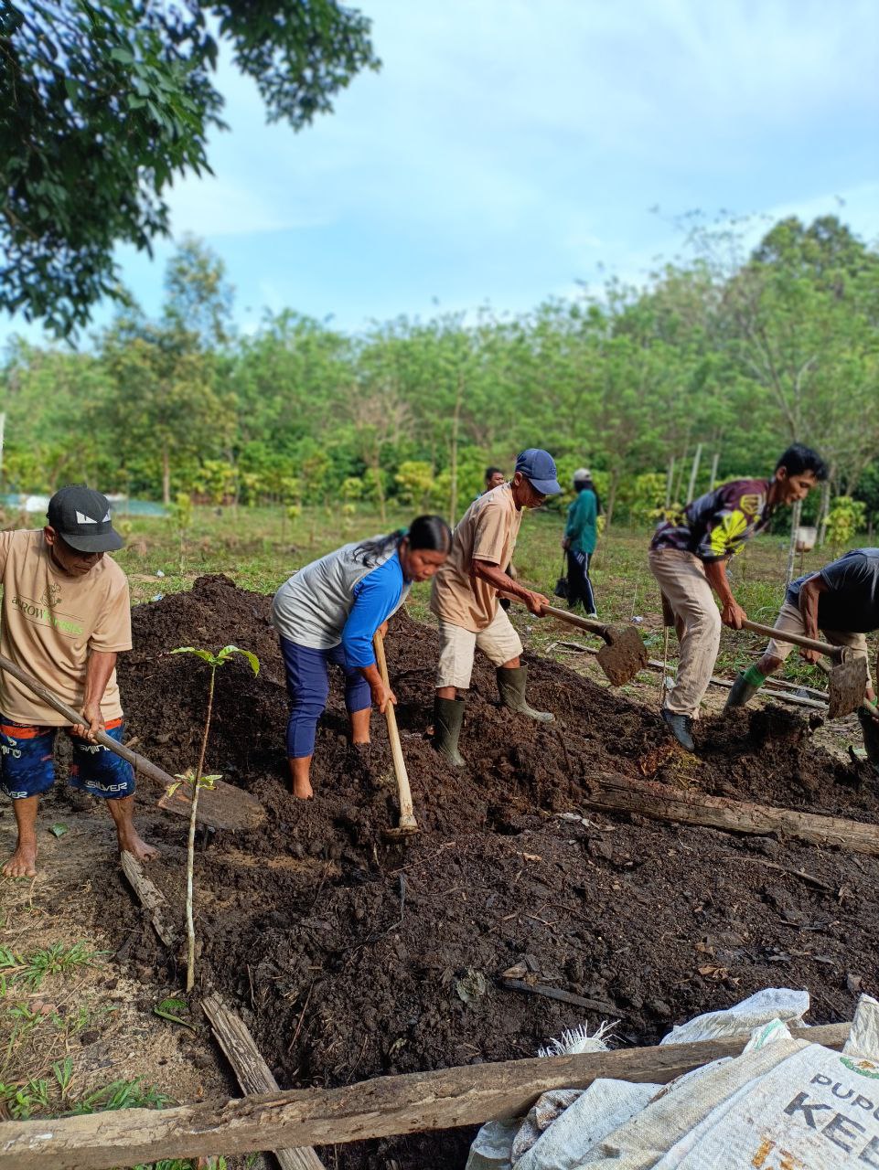 1. Aktivitas pagi pembalikan kompos yang ketiga kali, umur 1 bulan 3 minggu. Komposnya sudah jadi, tinggal menunggu karung. Rencananya akan dibagikan minggu depan untuk kelompok 1.