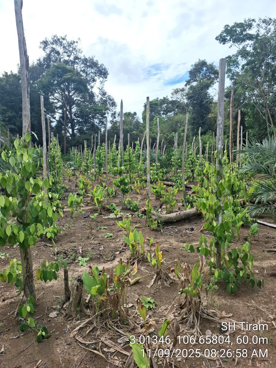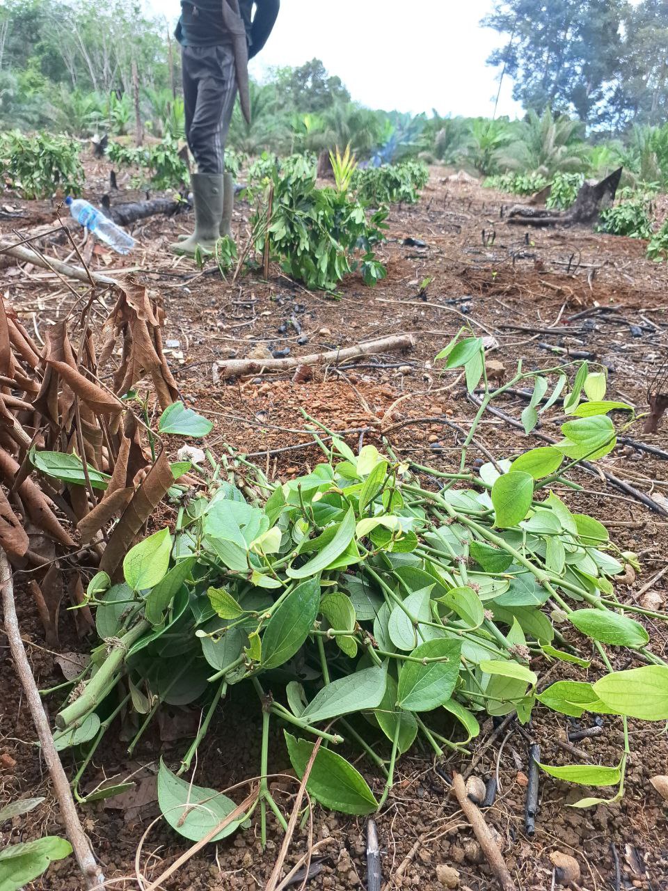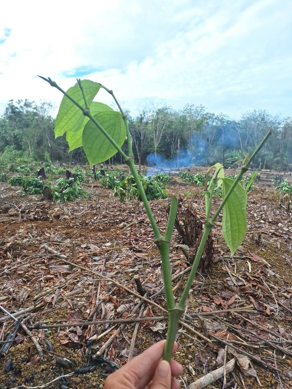 Petani Baru Membuka Lahan Disebelah Lahan Agroforestri. Menanam Bibit Panjang 6 Buku, Bibit Dari Tanaman Di Lahan Agroforestri Yang Sudah Berumur 14 Bulan. Menanam Kencur Disela Sela Tanaman Lada.