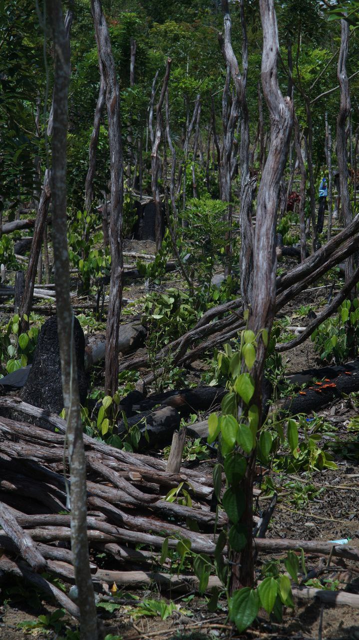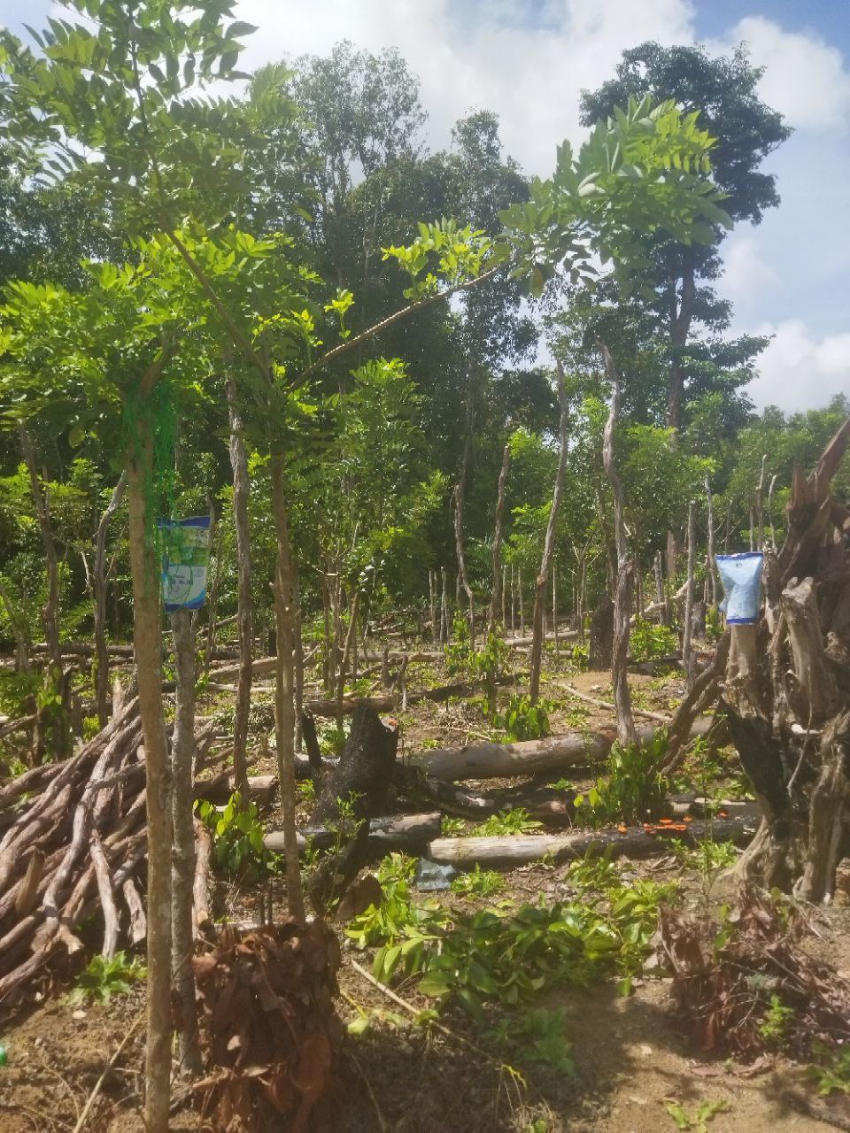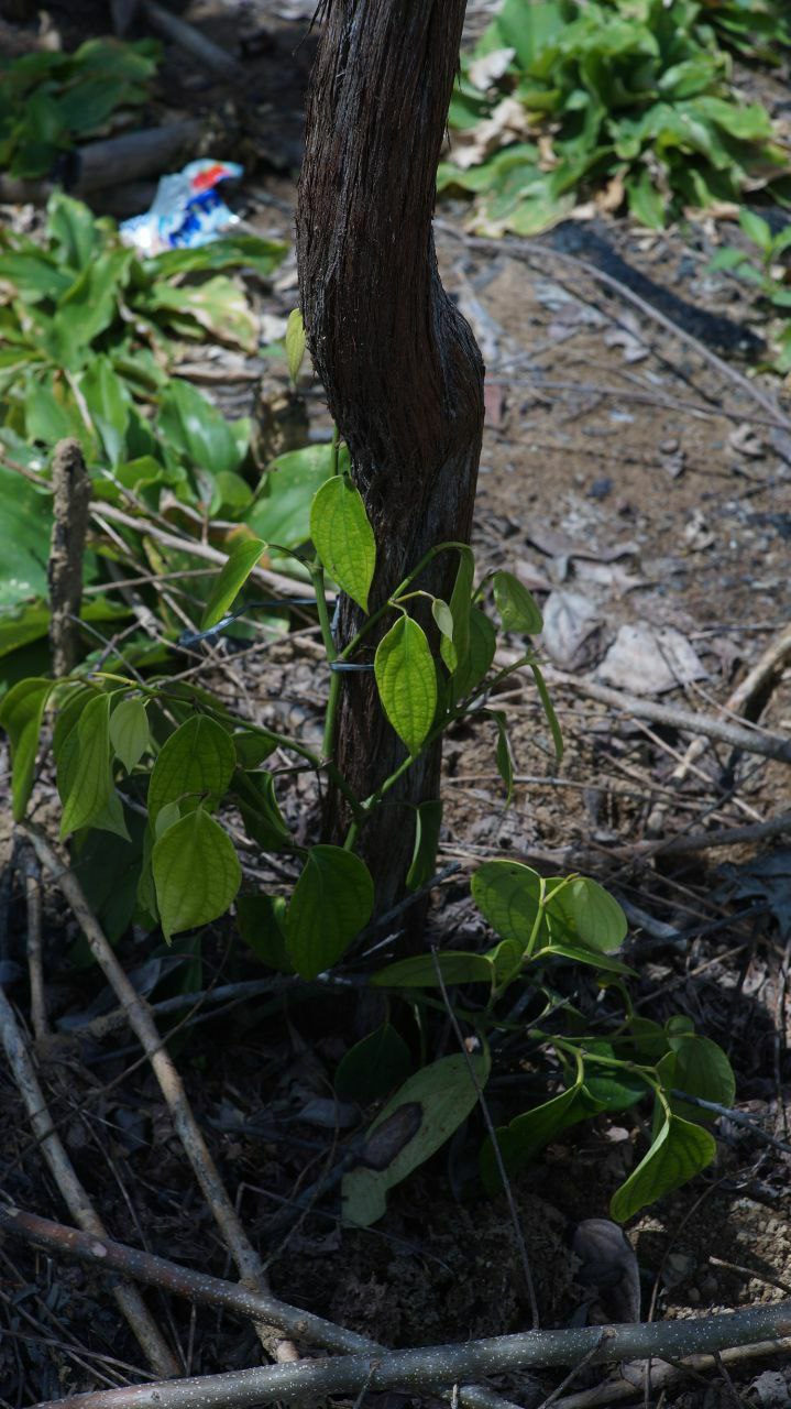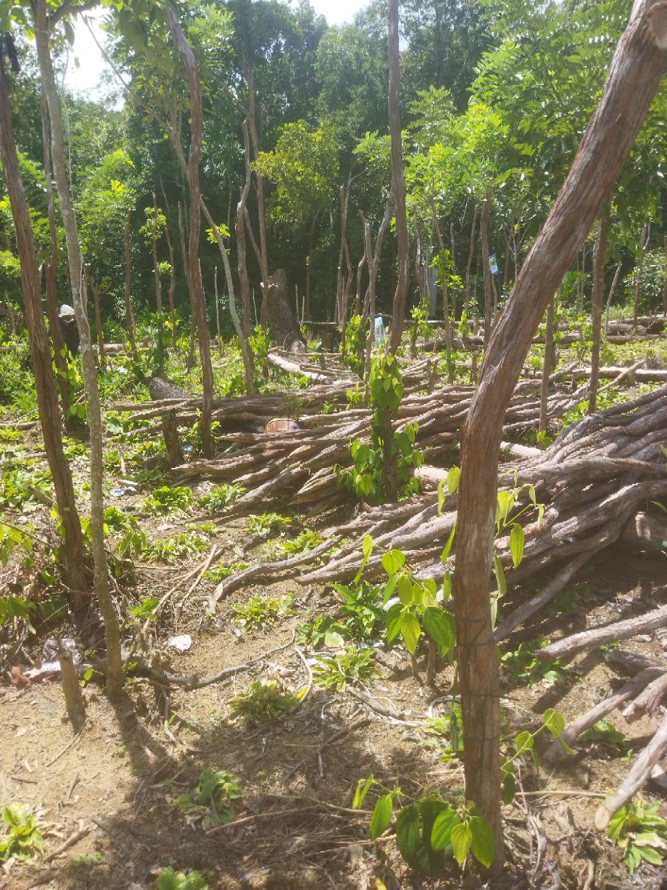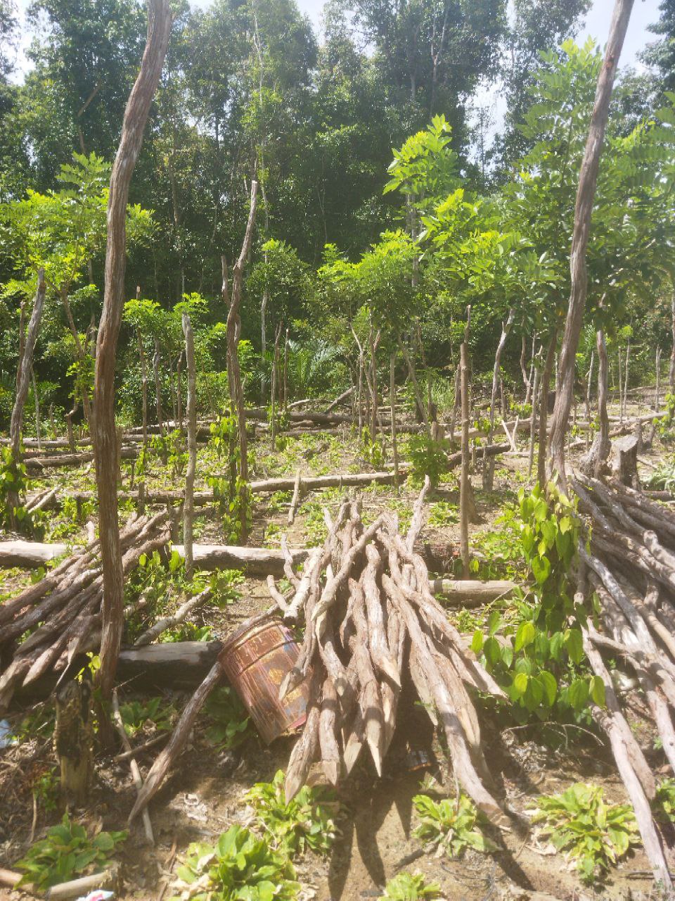 Monitoring Agrowforestry R1 dikebun Bapak Pahrul. Lada baru ditanam dengan menggunakan tajar mati (sapu-sapu) yang nantinya akan diganti dengan tajar hidup (Gamal) per 5 pohon. Tanaman lada di tumpang sarikan dengan kencur.
