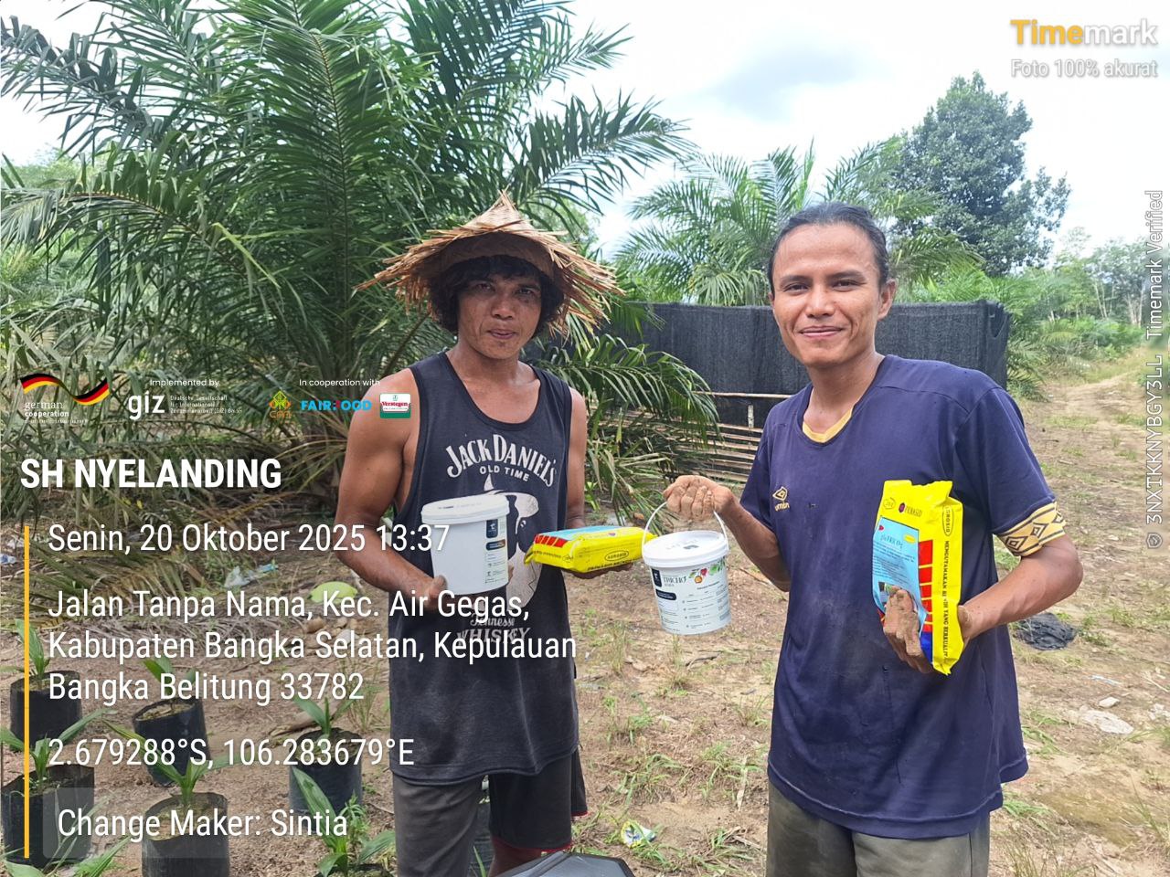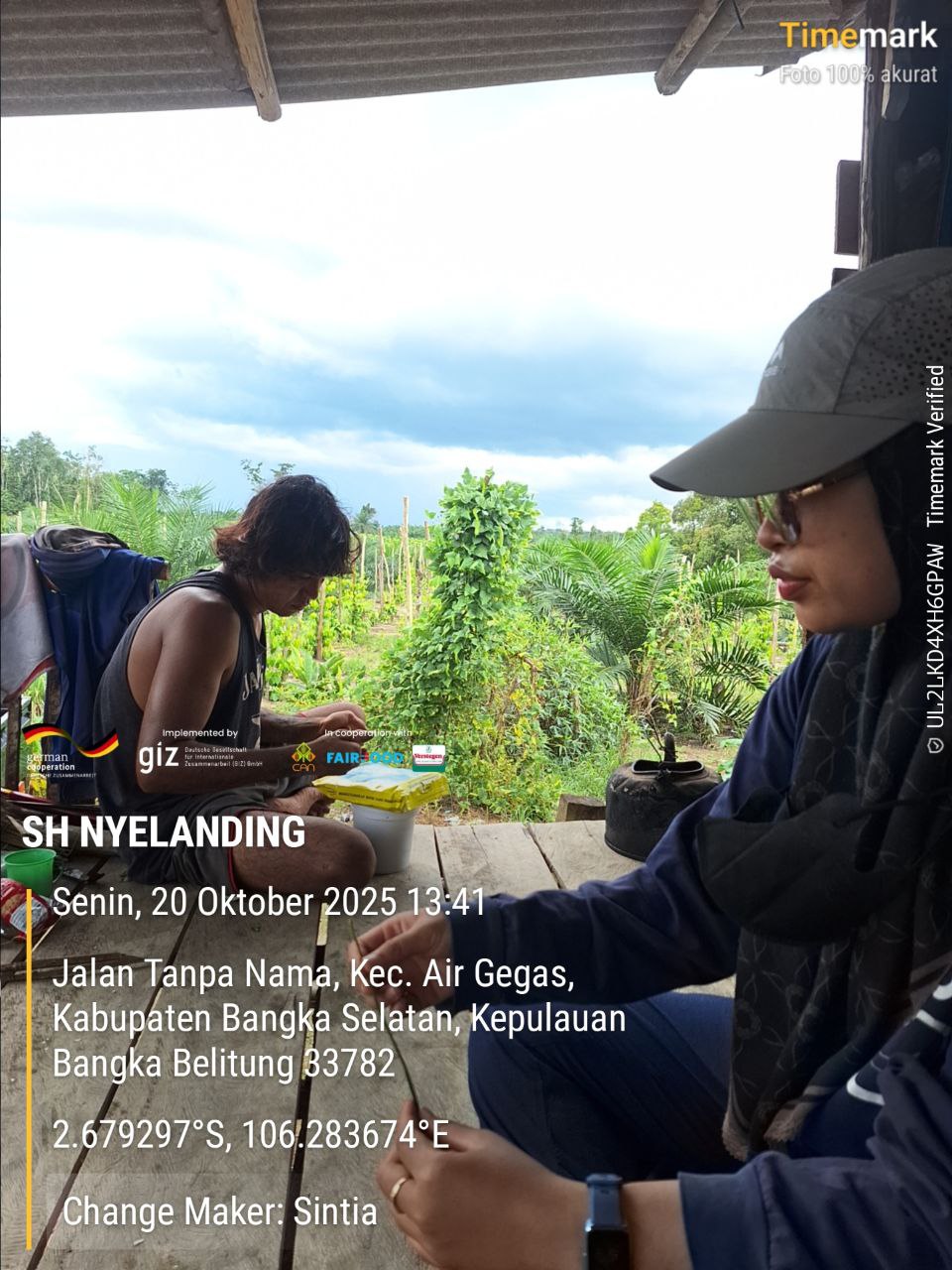 – Diskusi perihal lanjut atau tidaknya petani dalam proyek, hasilnya petani ingin tetap ikut namun dengan menggunakan lahan lama dan ada tumpangsari sawit. Pak Rangga sudah tanam 250 batang dan Pak Rino 450 batang.