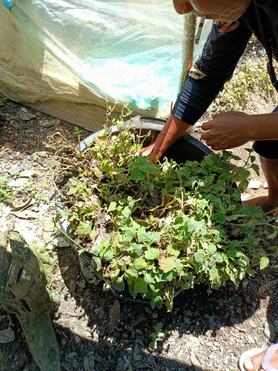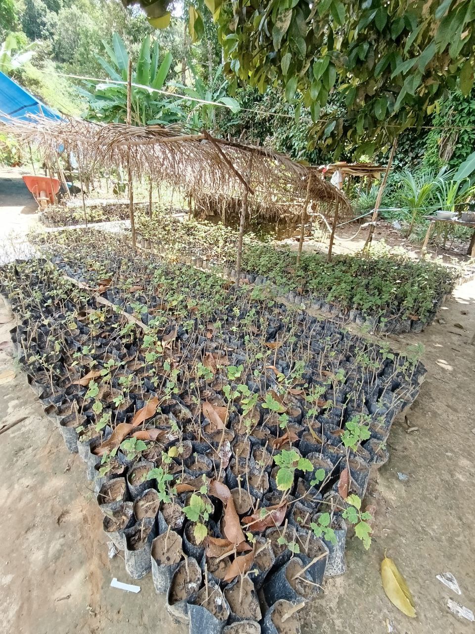 Pemantauan bibit nilam 5000. Sudah sebanyak 4350 sudah di polibag, sisanya belum dikarenakan polibagnya kurang. Bibit yang sudah ditanam sudah 2.000. Bibitnya banyak cabang karena mengikuti arahan dipotong pucuknya dan menggunakan mulsa cacahan pisang dan mulsa serai. Pengecekan pH sudah 5.5, sudah bagus. Rencana kebun nilam mau dibuat tempat wisata sekalian tempat edukasi.