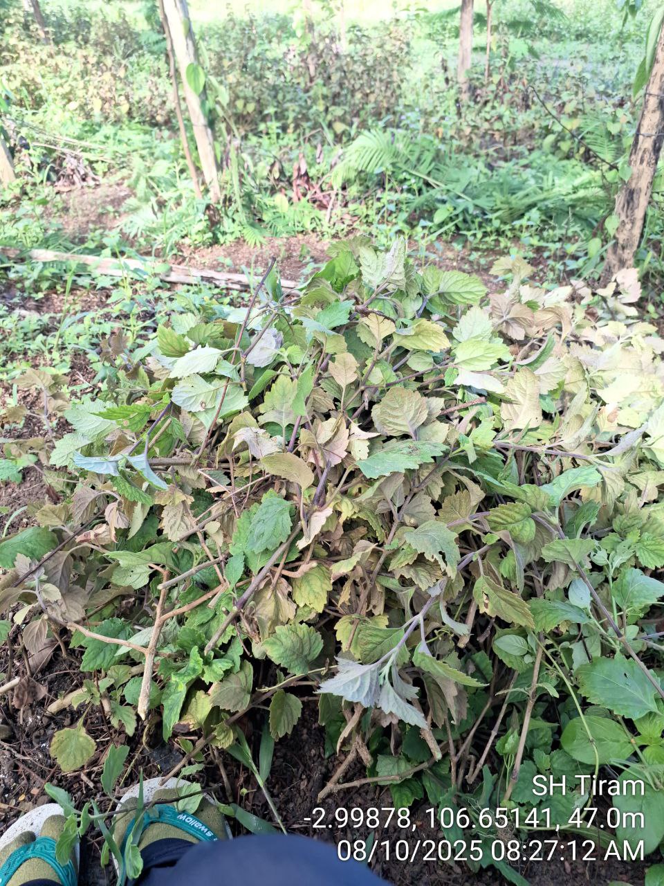 Monitoring tanaman nilam umur 2.5 bulan, kematian tidak ada dari terakhir pengamatan sebelumnya.