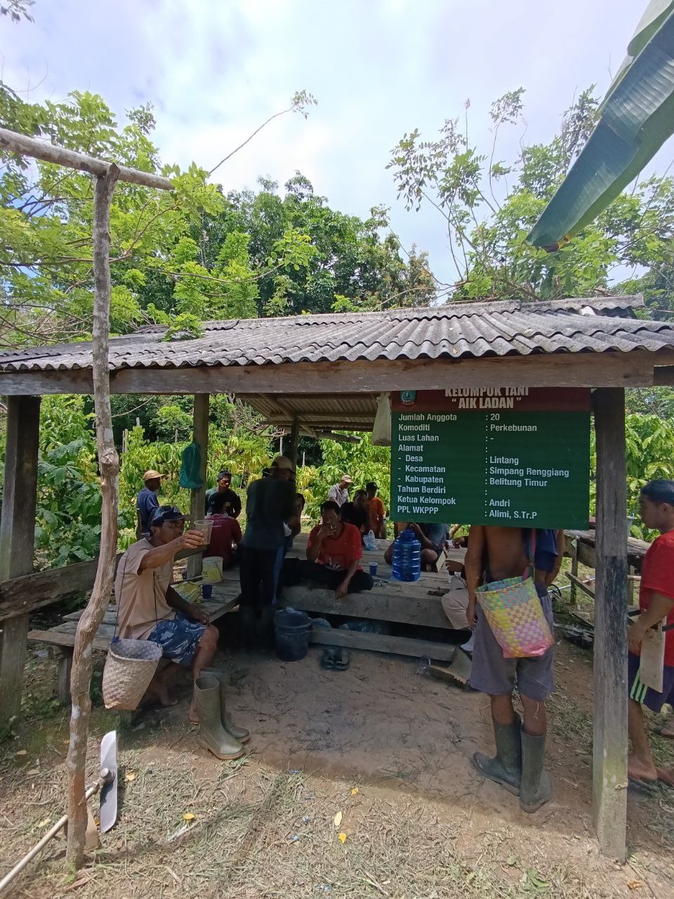 Monitoring Lahan Agroforestry Lada. Salah Satu Pengembangan Kelompok Aik Ladan Setelah Pembinaan: 1. Membuat Kopi Dengan Brand Aik Ladan Yang Dibina Juga Dari Sekolah Tani, 2. Membuka Cafe Sederhana. Panen Cherry Kopi: 1,250 Kg. Panen Lada Basah: 350 Kg. Mengisi Form Kobo.