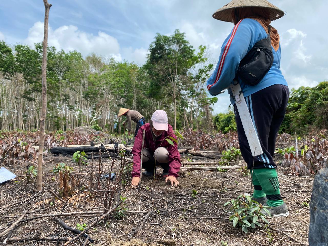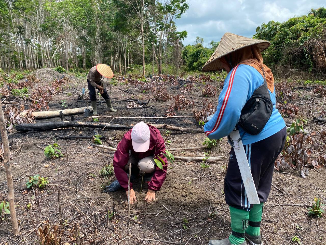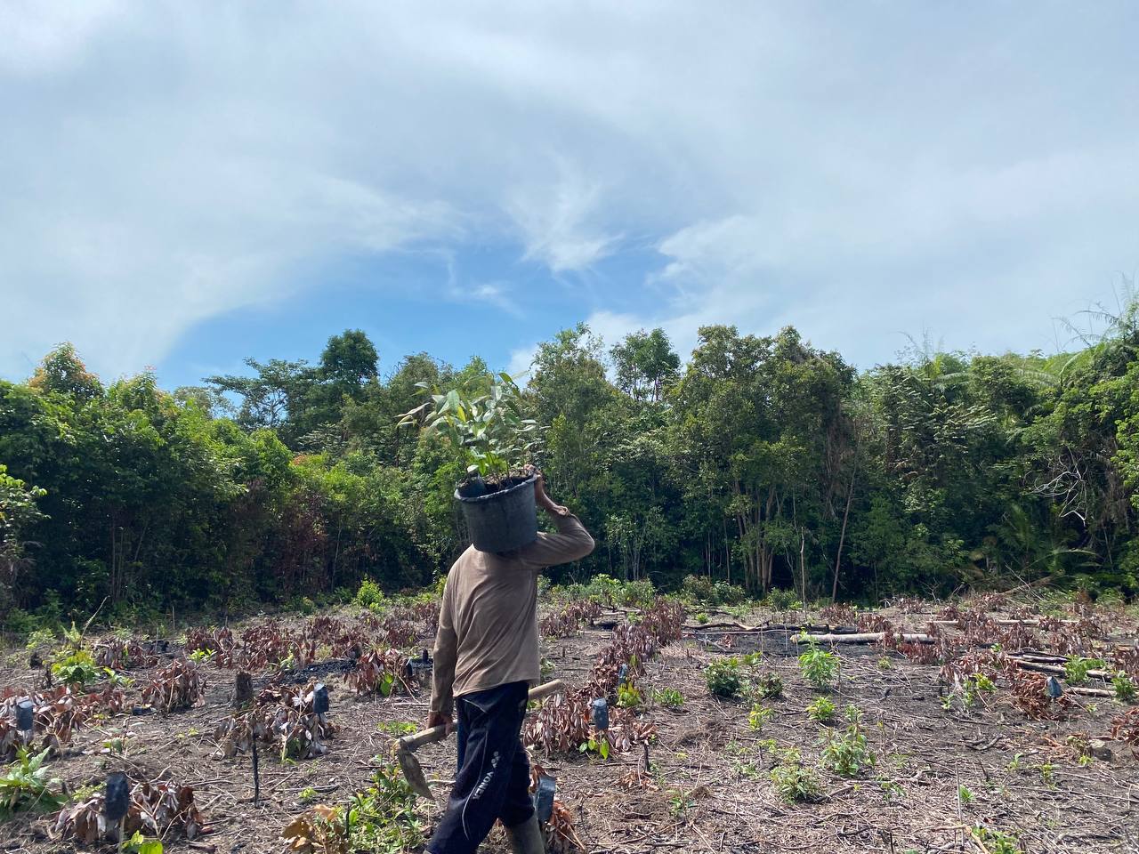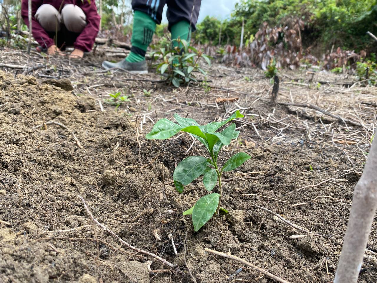 Monitoring Kebun R1; Bibit Lada Sudah Semua Ditanam; Bibit Buah Hampir Selesai Ditanam Dan CM Sudah Menyusun Sesuai Desain, Sisa Penanaman Pisang Yang Akan Dilakukan Oleh Petani Sendiri (Minggu Ini Selesai Karena Sudah Masuk Musim Hujan Rutin); Lada Baru Umur 3 Minggu; Pemupukan Kompos Dan Aplikasi Tricoderma Dilakukan Sekalian Saat Penanaman