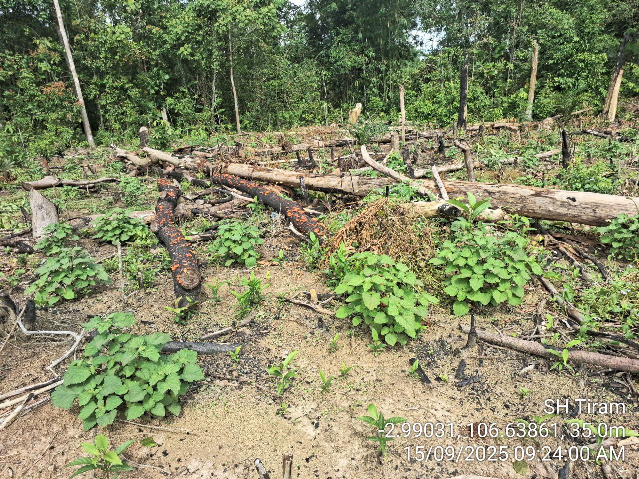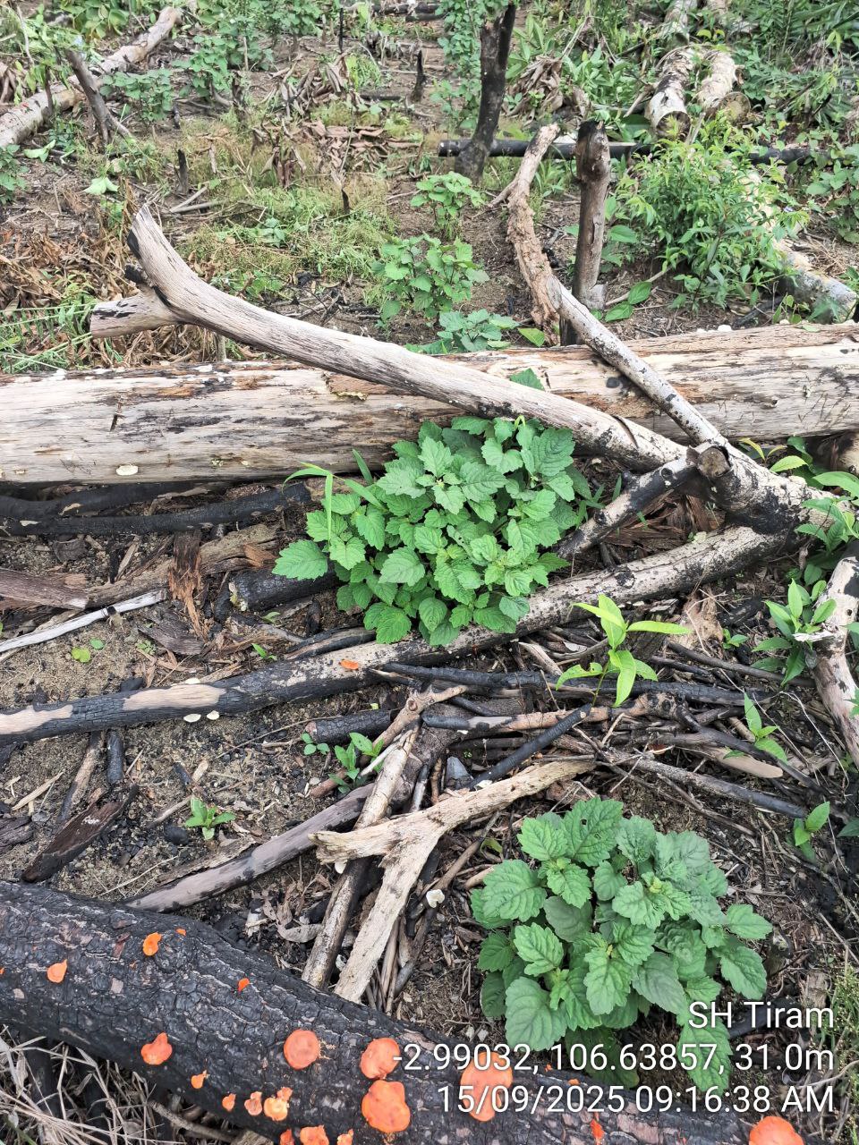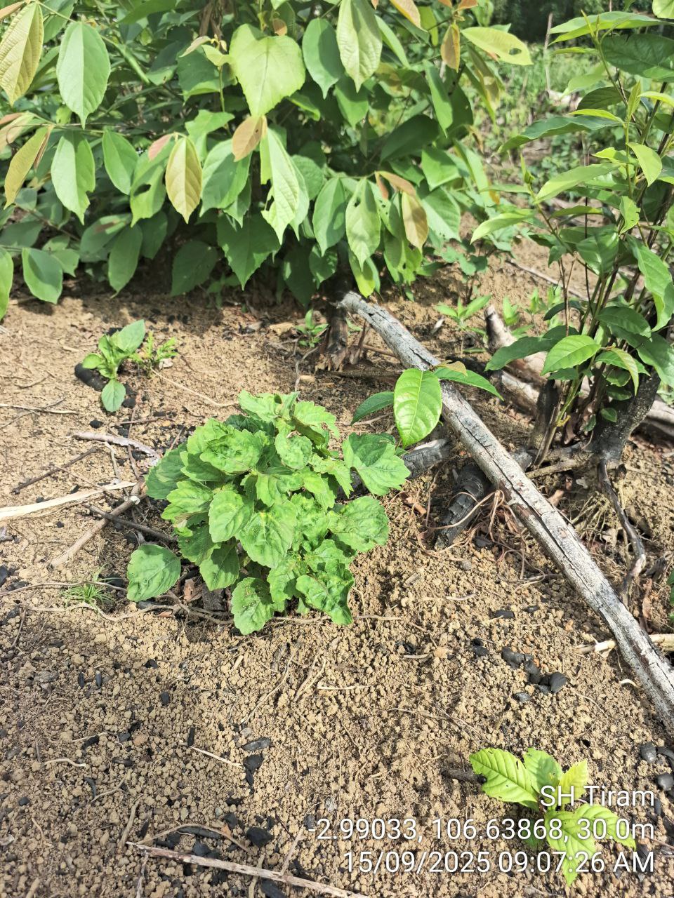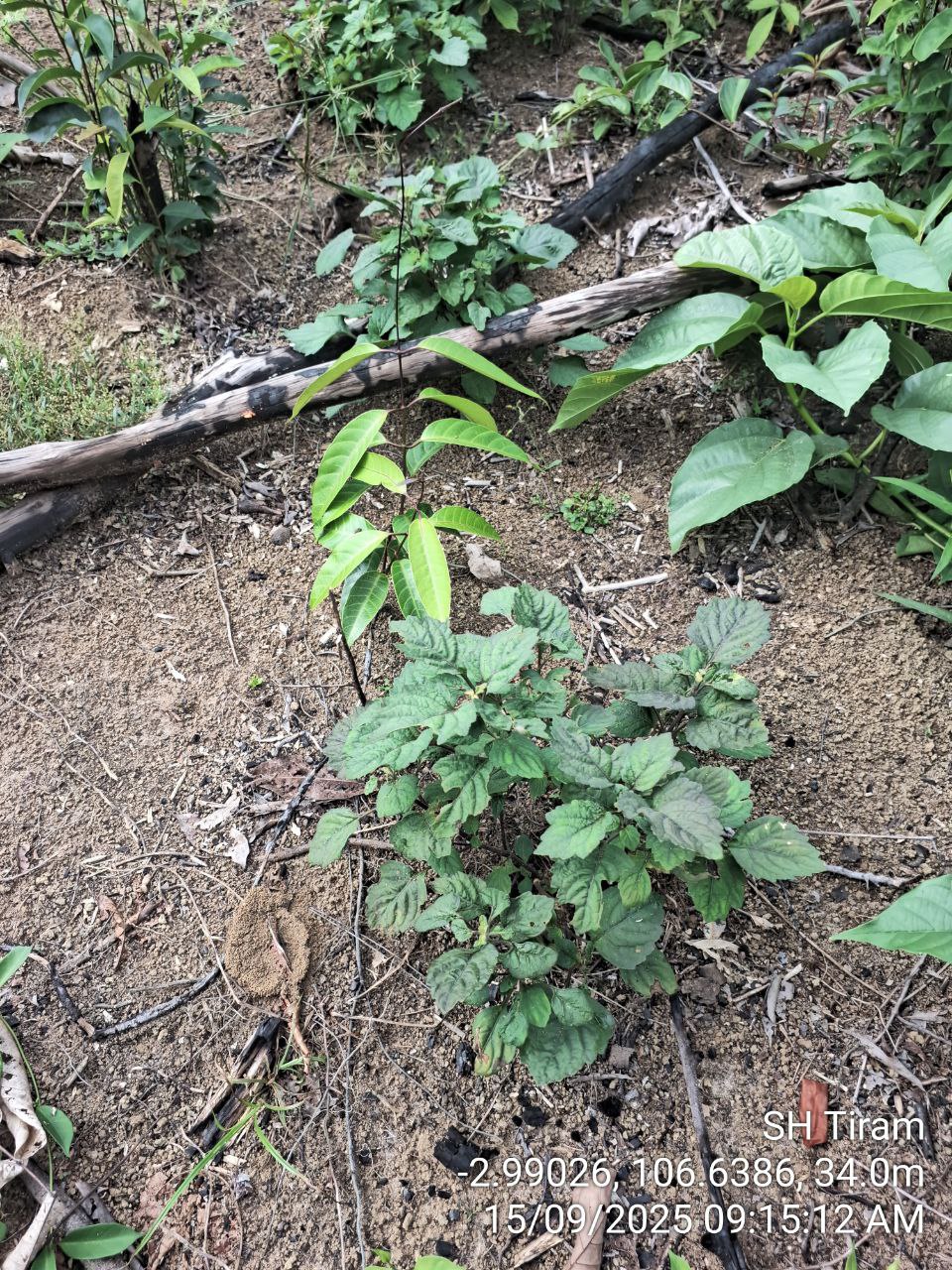 Pertumbuhan nilam bagus, banyak yang sudah rimbun sesuai antara pertumbuhan dan usianya. Diperkirakan pertumbuhan nilam yang bagus akibat pemberian pupuk ZA pada tanaman sawit dan NPK mutiara pada tanaman lada 2 minggu yang lalu, meskipun tidak spesifik pada nilam tapi nilam mendapat manfaatnya. Di lokasi lain yang nilamnya tidak berdekatan dengan lada dan sawit, pertumbuhan biasa saja seperti pada umumnya tanaman yang pulih dari cuaca panas. Ibunya sedang menanam lada untuk memenuhi lokasi agroforestri ini.