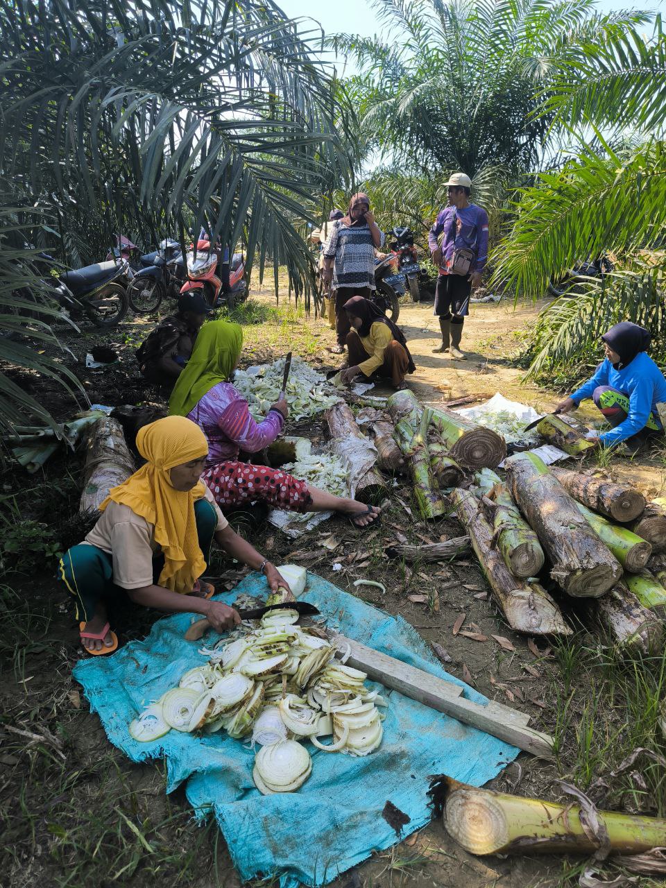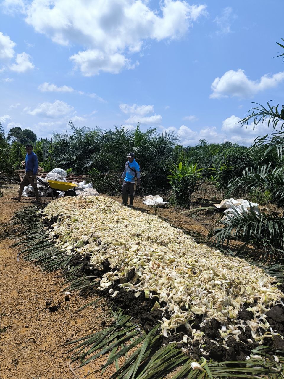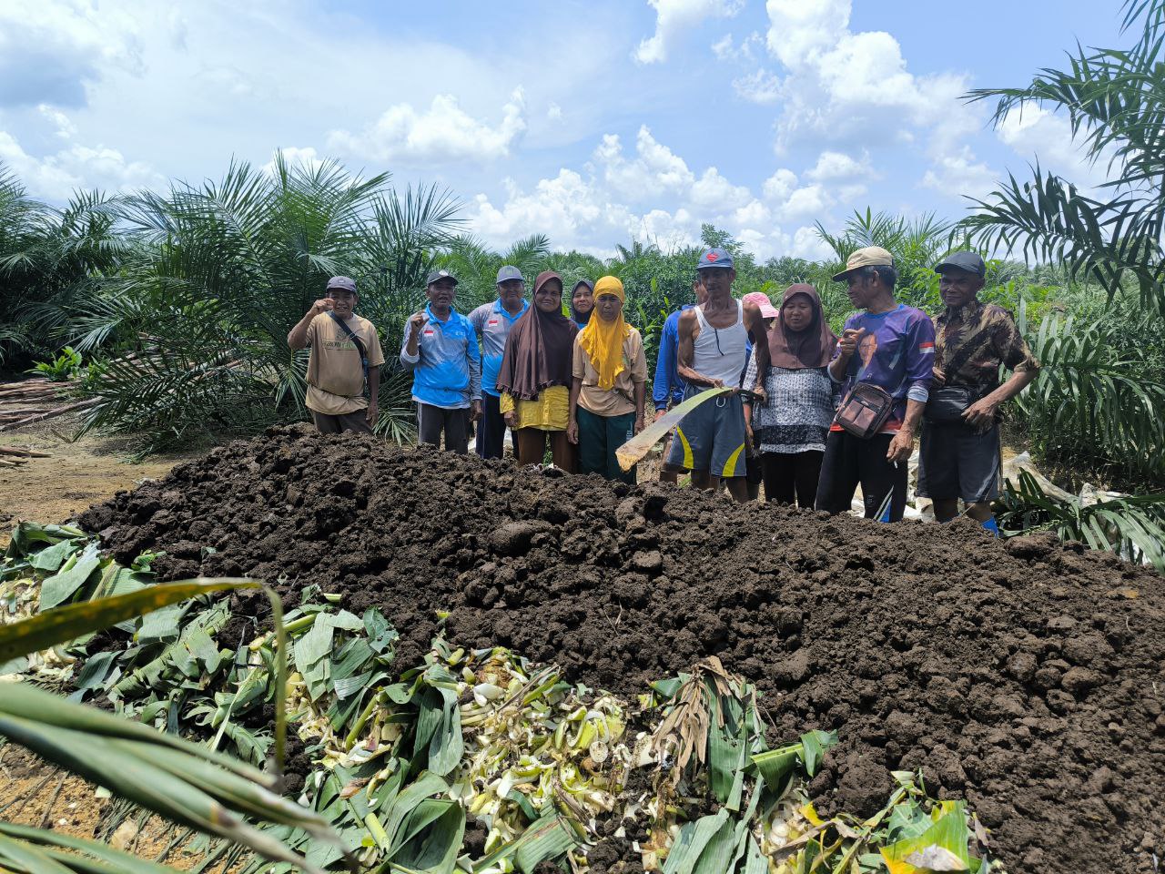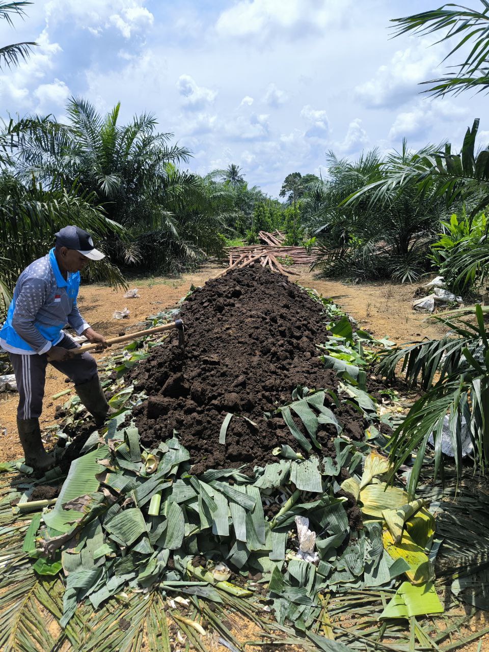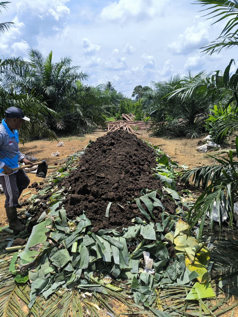 Pembuatan Komunal Komoos ukuran 6 x 1.5 m Bahan ukuran 75 karung kohe dan 1 mobil pick up cacahan gedebok pisang