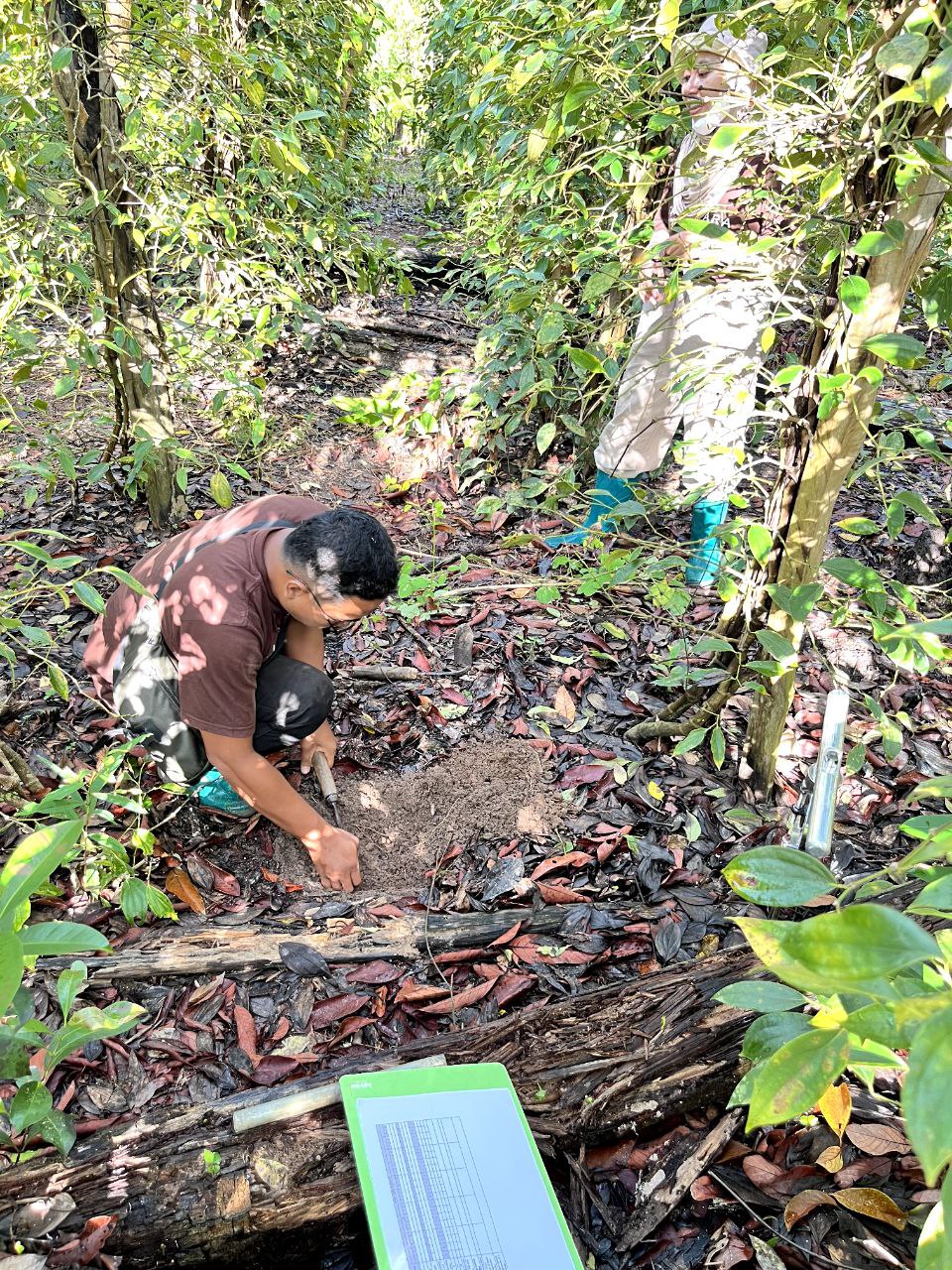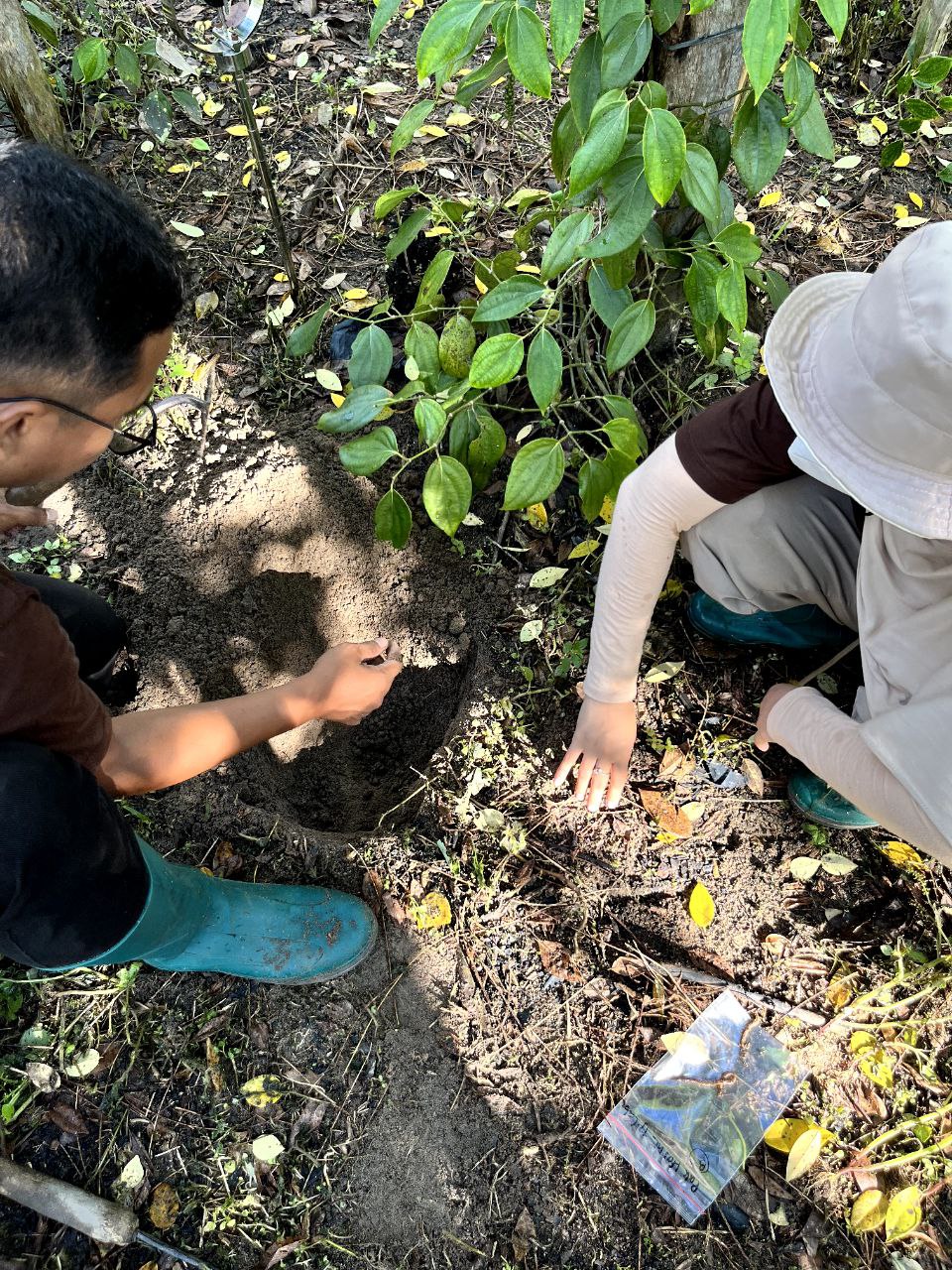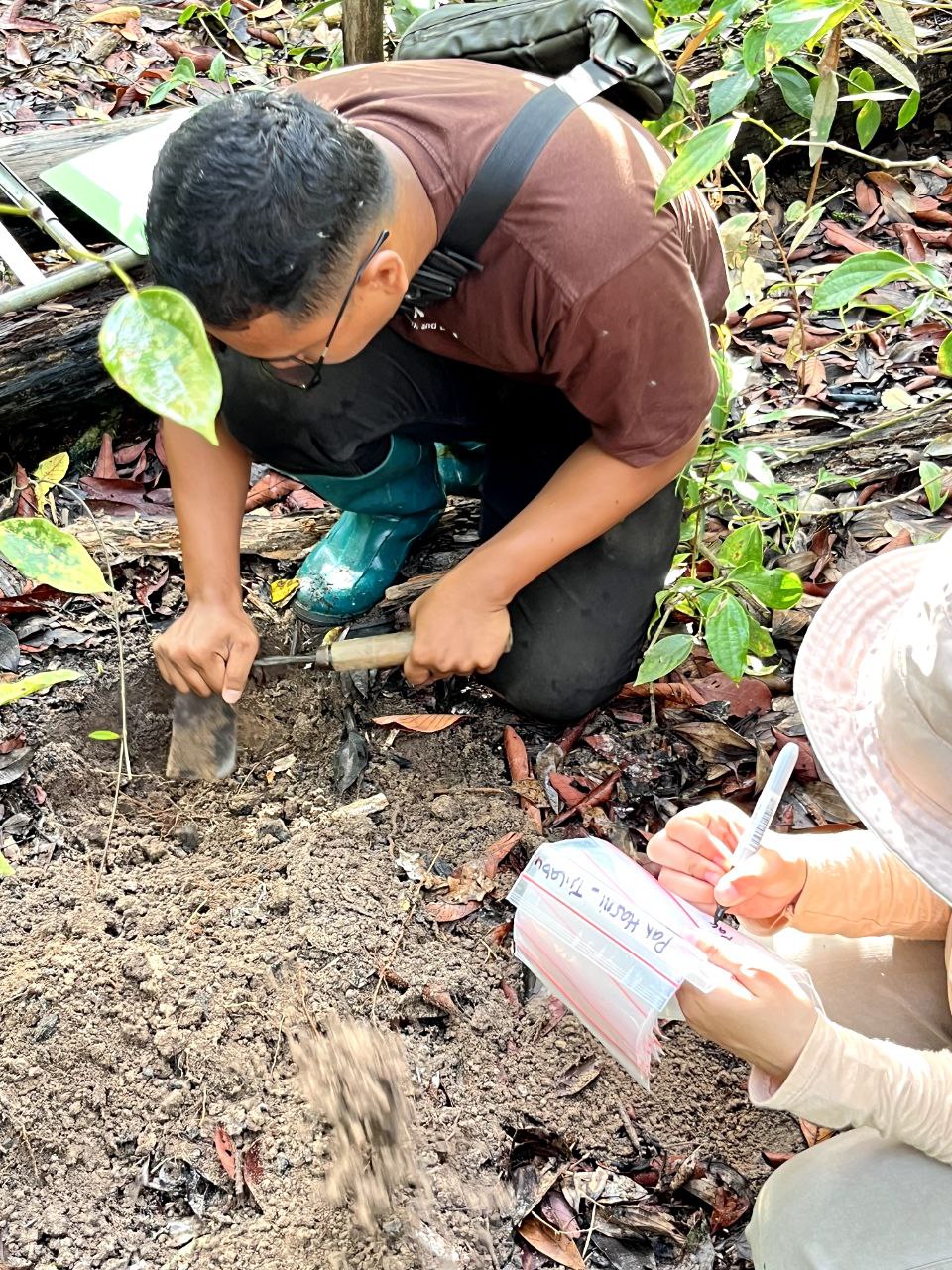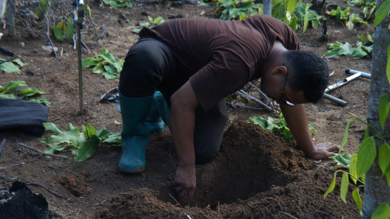 Survey tanah bersama tim Tanahara di kebun petani R1. Survey pertama dilaksanakan di kebun Bapak Hasni. Survey kedua di kebun Bapak Darto. Survey ketiga di kebun Bapak Samsuri. Variabel pengecekan tanah berupa: 1. Top Soil, 2. Penetrasi, 3. Jumlah Cacing, 4. %Cover Crop.