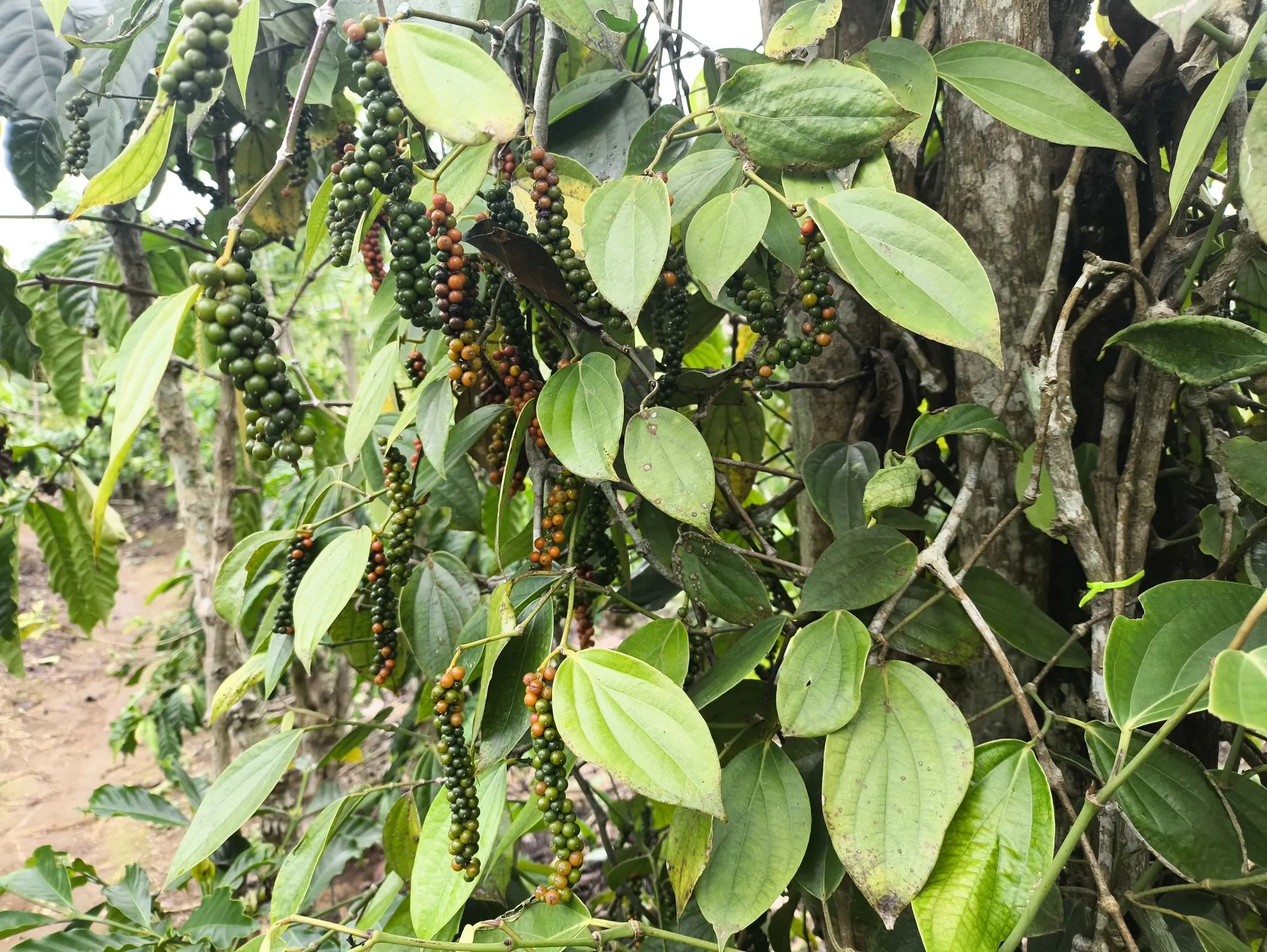Decades ago, he looked at those steep, infertile hillsides and imagined something different. He believed that the land could live again if treated with patience and care. Guided by his experience and love for the soil, he began experimenting with agroforestry integrating black pepper vines and coffee trees, supported by shade trees to restore balance to nature.